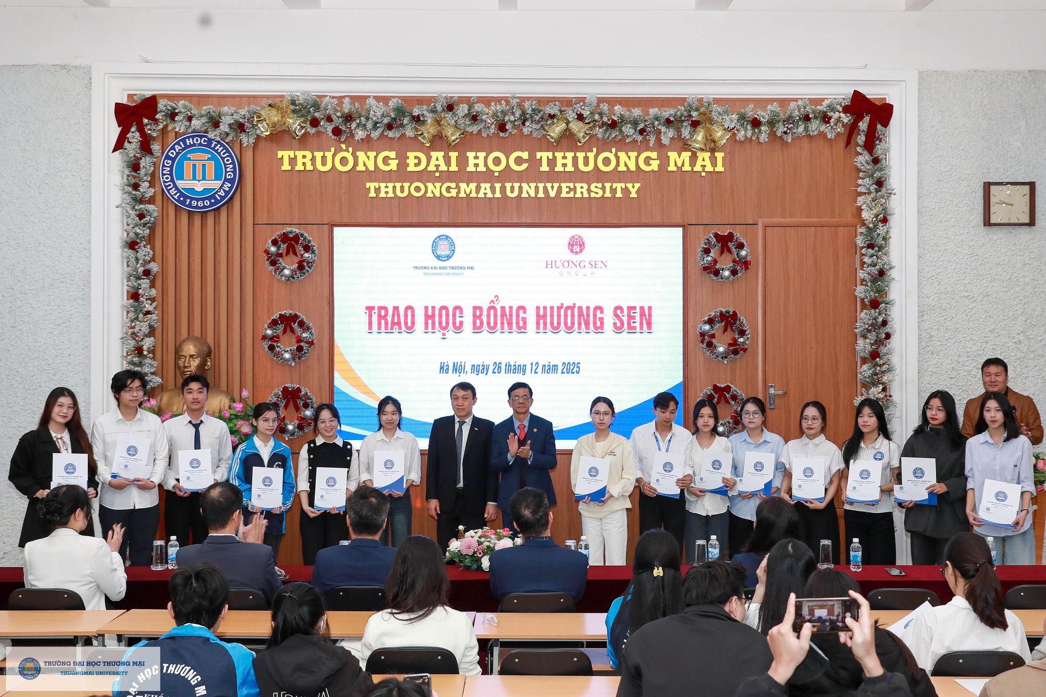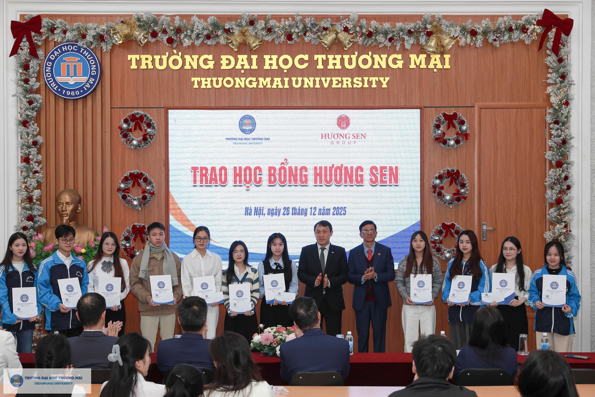 Sáng ngày 26/12/2025, Trường Đại học Thương mại đã trao 14 suất học bổng tổng trị giá 112.000.000 đồng cho 14 sinh viên Nhà trường có thành tích học tập và rèn luyện xuất sắc. Sinh viên Đào Thu Hiền lớp 58F5 Khoa Kinh tế đã vĩnh dự là một trong 14 sinh viên xuất sắc được trao tặng học bổng quý giá này.
